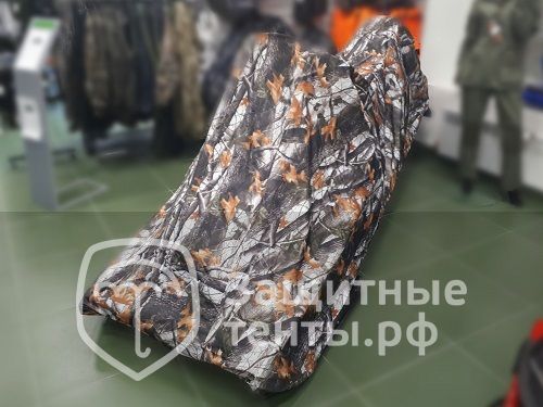 Для каждой серии снегоходов созданы индивидуальные лекала с учетом габаритов техники. Данный тент-чехол для снегохода укрывает вместе с лыжами.