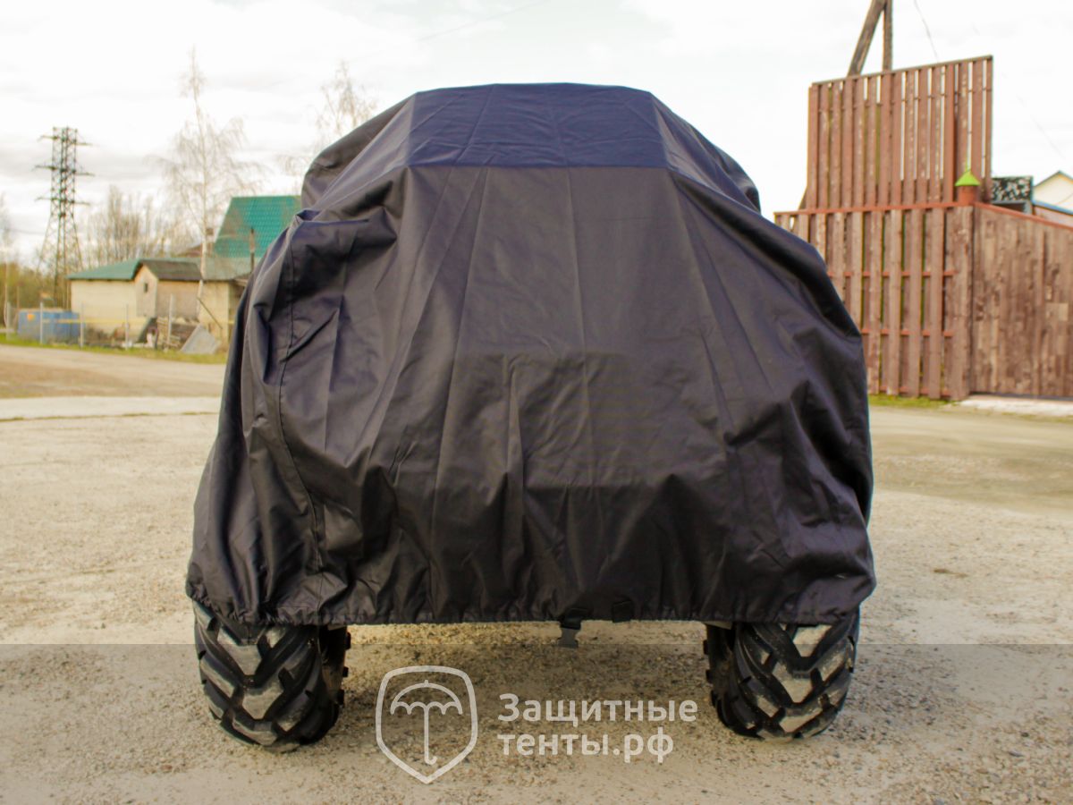 Чехол по периметру фиксируется толстой и прочной морозоустойчивой резинкой, которая надежно удержит чехол на квадроцикле во время движения. |