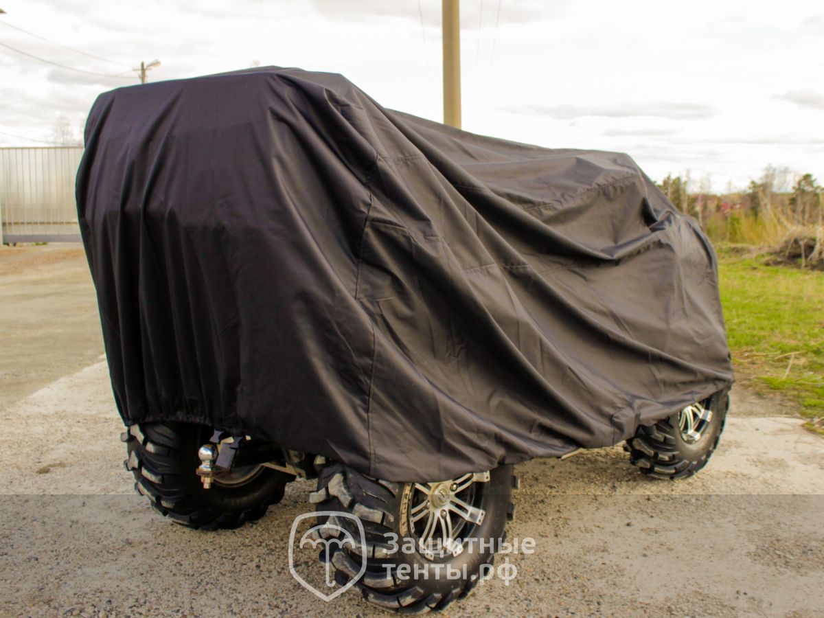 Чехол по периметру фиксируется толстой и прочной морозоустойчивой резинкой, которая надежно удержит чехол на квадроцикле во время движения. |
