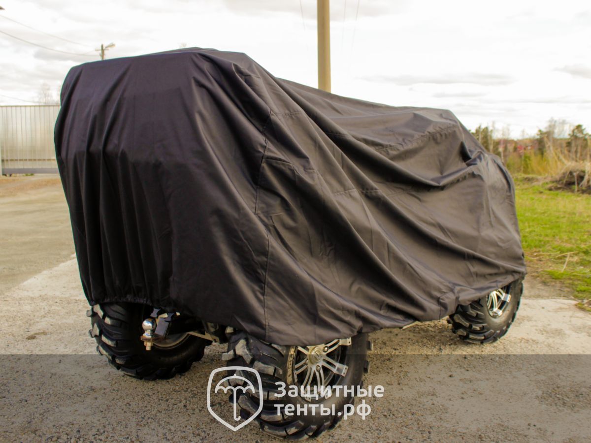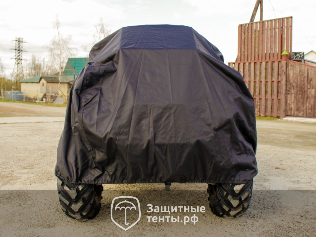 Чехол по периметру фиксируется толстой и прочной морозоустойчивой резинкой, которая надежно удержит чехол на квадроцикле во время движения.